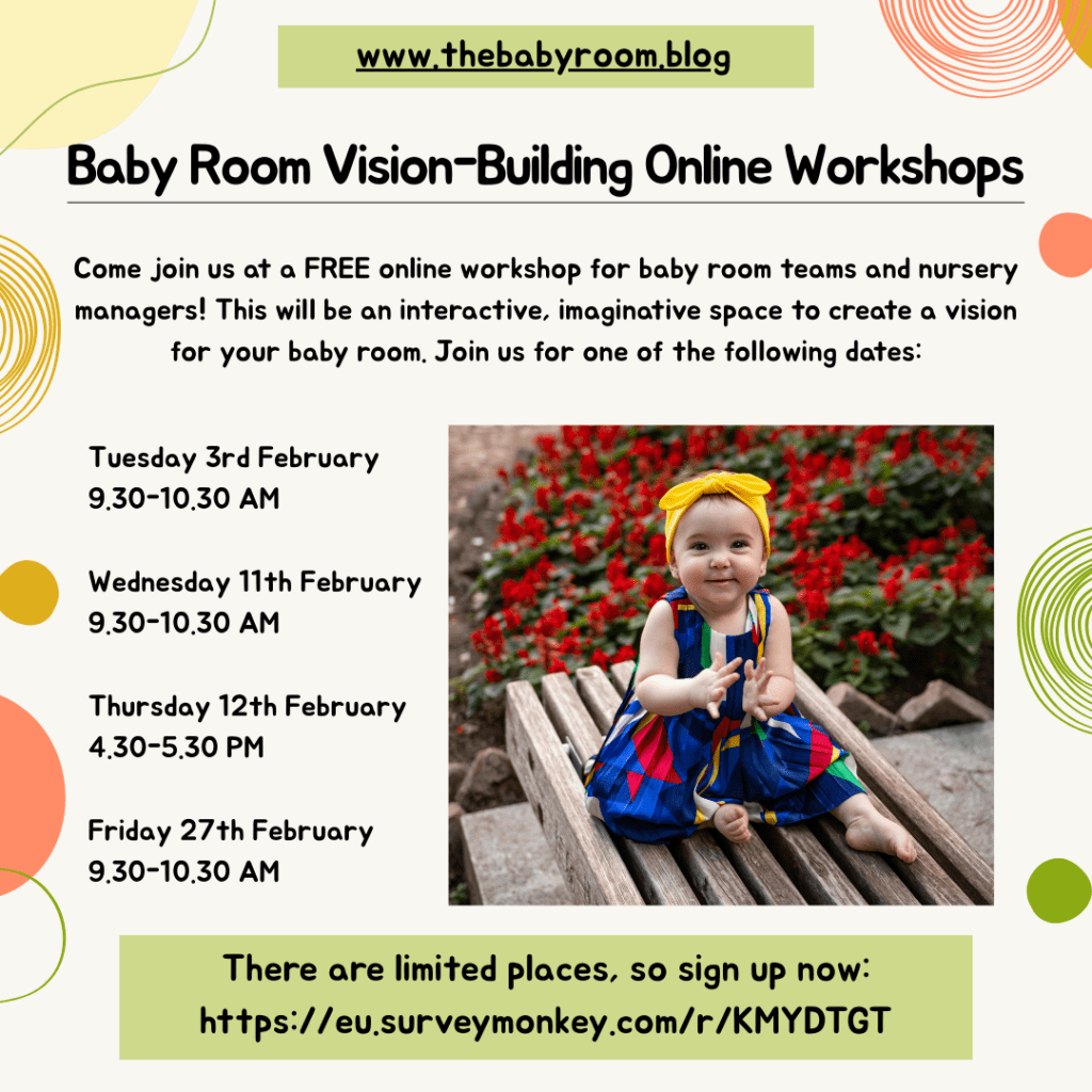 Come along to our free workshops for baby room educators and nursery managers! Each workshop will be an interactive and creative space to engage with fellow baby room educators and develop a vision for your baby room.