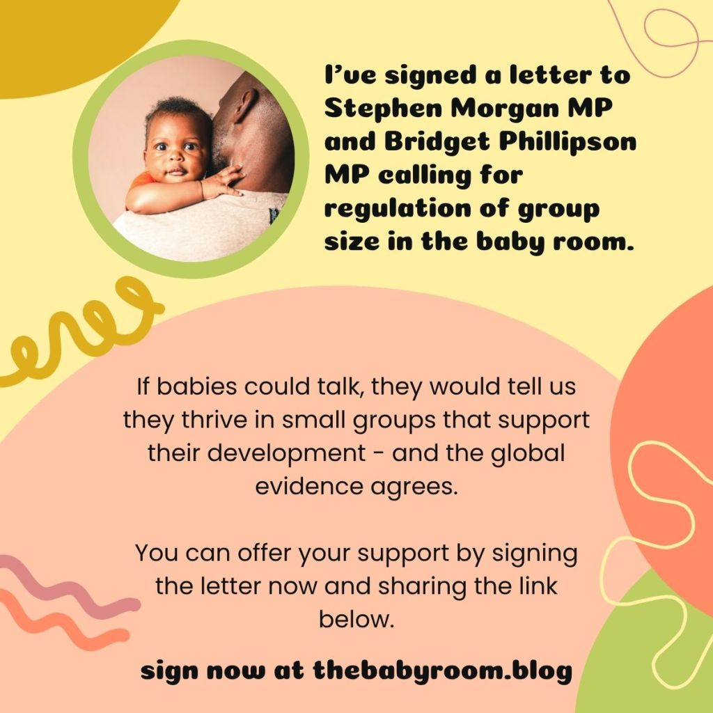 We understand that nurseries are operating in a difficult climate at the moment. Nurseries often want to do the right thing by babies – and understand that limiting group size is integral to this – but they also want to respond to the increased demand for babies’ places and keep costs low.